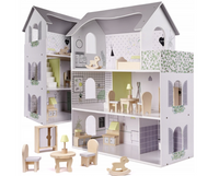 Domek dla lalek drewniany + mebelki 70cm szary KX6278